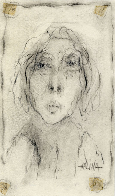 און אָט זײַנען די פֿיר בילדער, וואָס זי האָט מיר געשאָנקען מיט די פֿרויען־פּנימער אַזוי, ווי זי האָט זיי פֿאַרגעדענקט. פֿאַרשטייט זיך, אַז דאָס איז נאָר אַ קליינער טייל פֿון אירע דערמאָנונגען.