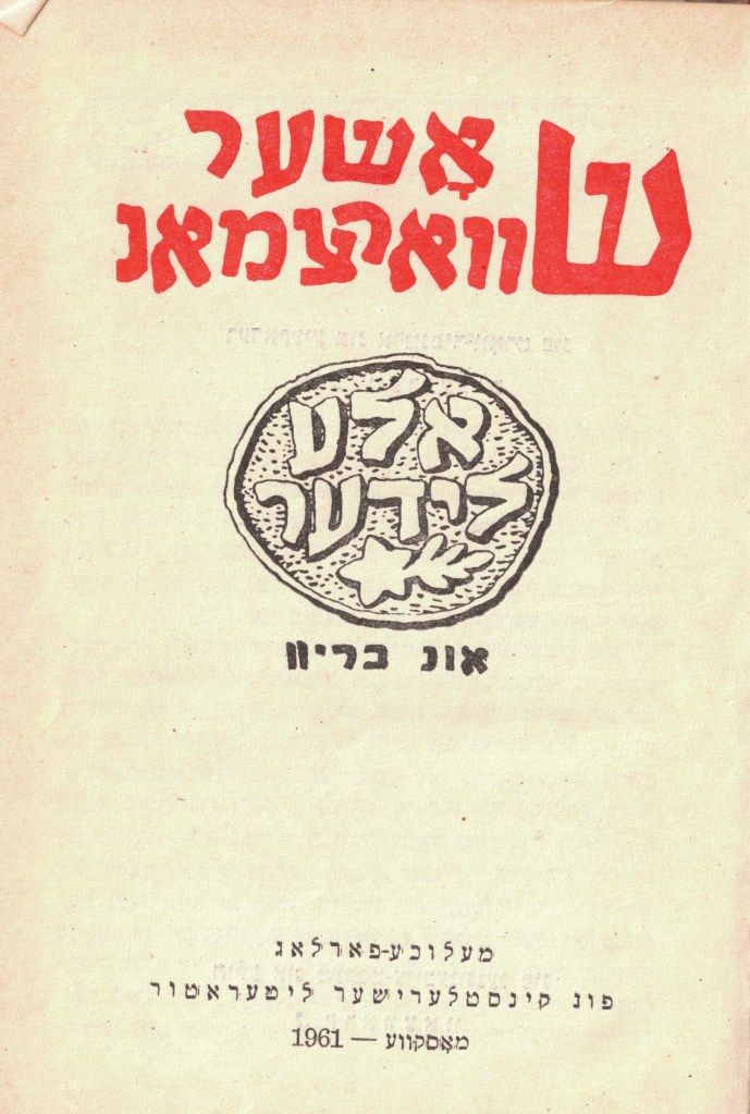 מיר לייגן אײַך פֿאָר אַ קראַנץ לידער פֿון אָשר שוואַרצמאַן, וואָס זײַנע אײַנגעשלאָסן אין זײַן זאַמלונג „אַלע לידער און בריוו‟, דערשינען אינעם „מלוכה־פֿאַרלאַג פֿאַר קינסטלערישער ליטעראַטור‟, מאָסקווע — 1961.