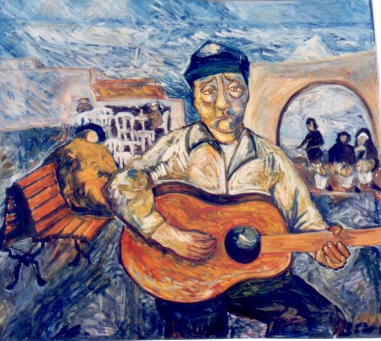 איך קוק אויף די בילדער פֿון נאַטאַשעס ציקל „גאַסן־מוזיקער‟. ווער פֿון די געקומענע אין לאַנד אין די אָנהייב 1990ער געדענקט זיי נישט: די אַקאָרדעאָניסטן, גיטאַריסטן, טרומייטערס און קלאַרנעטיסטן, וואָס זייער בינע איז געוואָרן אַ גאַסן־ראָג. זיי האָבן אונדז נישט געגעבן צו פֿאַרגעסן די פּאָפּולערע לידער, אויף וועלכע מיר זײַנען אויפֿגעוואַקסן אינעם פֿאַרלאָזטן לאַנד, און מיט געציילטע נײַע ניגונים, שוין אויסגעלערנט דאָ, דערמאָנט יעדן, וווּהין דער נײַער ייִדישער נע־ונד האָט אונדז פֿאַרוואָרפֿן… „ירושלים של זהבֿ…‟ —