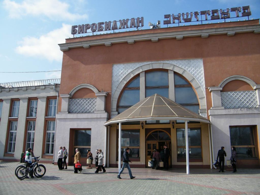 געװען איז אַ קילער מײַ–פֿאַרנאַכט. סעמיאָן אַרקאַדיעװיטש, אָנגעטאָן אין אַ טונקעלן רעגן–מאַנטל און מיטן פּאָרטפֿעל אין דער האַנט, איז אַרױס פֿונעם װאַגאָן, און עס האָט זיך אים תּיכּף געװאָרפֿן אין די אױגן, אַז לעבן דער אױפֿשריפֿט אױף רוסיש „ביראָבידזשאַן‟, זעען זיך אָן איבערן בנין פֿונעם װאָקזאַל מאָדנע צײכנס פֿון דער זעלבער גרײס; דאָס זײַנען געװען די ייִדישע אותיות, װאָס ער האָט ביז אַהער קיין מאָל ניט געזען.
