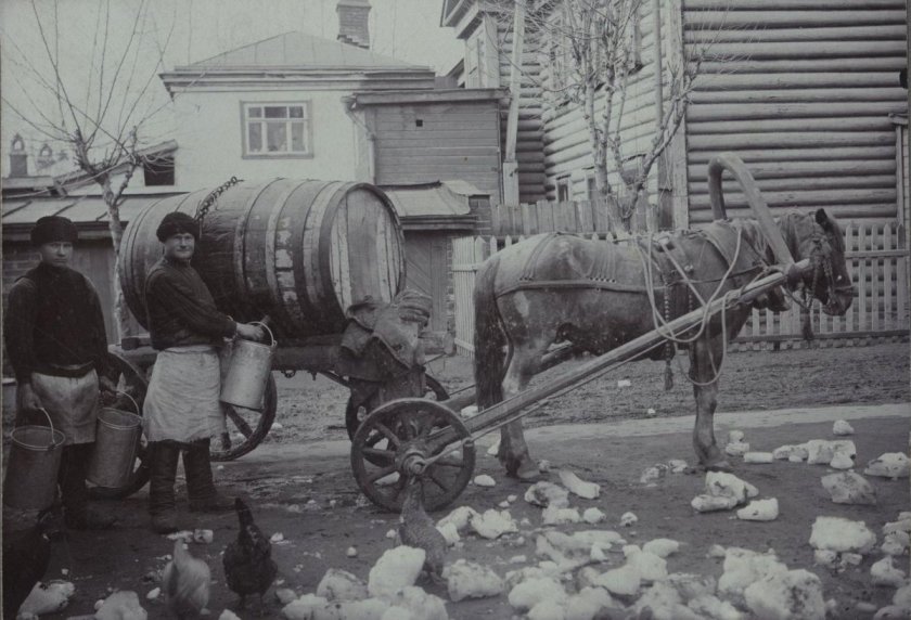 בײַ די גבֿירים פֿלעגט מען נעמען אַ גאַנצן צעבער [צובער] וואַסער מיטאַמאָל, צו זיי פֿלעגט מען געוויינטלעך פֿירן וואַסער. אַ וואַסערפֿירער האָט שוין געדאַרפֿט האָבן אַ קאַפּיטאַל: פֿערד, אַ וואָגן, אַ שליטן, אַ שטאַל. דאָס האָט שוין געקענט באַטרעפֿן אַ פּאָר הונדערט קערבלעך. עס זײַנען געווען וואַסערפֿירער, וואָס האָבן געהאַט עטלעכע פֿערד מיט וואָגנס. אַזוינער אַ וואַסערפֿירער פֿלעגט זיך צודינגען אַ פּאָר מענטשן, וואָס זאָלן פֿאַר אים פֿאַנאַנדערפֿירן וואַסער. אין יענער צײַט איז קיינעם נישט פֿאַרווערט געווען צו זײַן אַ וואַסערפֿירער, ווען ער האָט נאָר געהאַט דעם קאַפּיטאָל (עס איז געווען פֿרײַע קאָנקורענץ, ווי די פּראָפֿעסאָרן זאָגן). וואַסערפֿירער האָבן אָנגעוווירן זייערע קונדן.