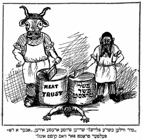 אַרײַן אין דער געשיכטע פֿון קצבֿות אָדער בוטשערײַ, ווי מ׳האָט עס גערופֿן אין אַמעריקע, דער „אויפֿשטאַנד‟ פֿון די ייִדישע באַלעבאָסטעס. אין מײַ 1902 איז דער פּרײַז אויף כּשר פֿלייש אַ שפּרונג געטאָן אין ניו־יאָרק פֿון 12 סענט ביז 18 סענט פֿאַר אַ פֿונט (454 גראַם). דעם פֿלייש־מאַרק האָבן קאָנטראָלירט די מאָנאָפּאָליסטן (טרעסט). ווי אַ פּראָטעסט, האָבן די קצבֿים אין די קליינע יאַטקעס זיך אָפּגעזאָגט צו פֿאַרקויפֿן פֿלייש במשך אַ וואָך; זייער פּראָטעסט האָט אָבער נישט געהאָלפֿן. דעמאָלט זײַנעם אויף דער גאַס אַרויס די ייִדישע באַלעבאָסטעס אין שפּיץ מיט די אָרטיקע סופֿראַזשיסטקעס, וועלכע האָבן אָנגעהויבן רופֿן צו אַ שטרײַק. דעם 15טן מײַ האָבן זיך אויף די גאַסן פֿון אונטערשטן איסט־סײַט באַוויזן אַרום 20 טויזנט אויפֿגעבראַכטע פֿרויען, וועלכע האָבן זיך אַרײַנגעריסן אין כּשרע יאַטקעס, געכאַפּט שטיקער פֿלייש און אין דרויסן, אָפּגיסנדיק עס מיט בענזין, אָנטערגעצונדן די קופּעס. די אָנגעקומענע פּאָליציי האָט די ווײַבער נישט געשאַנעוועט: געוואָרפֿן זיי פֿון די פֿיס אויף דער ברוק, געשלאָגן מיט שטעקנס.