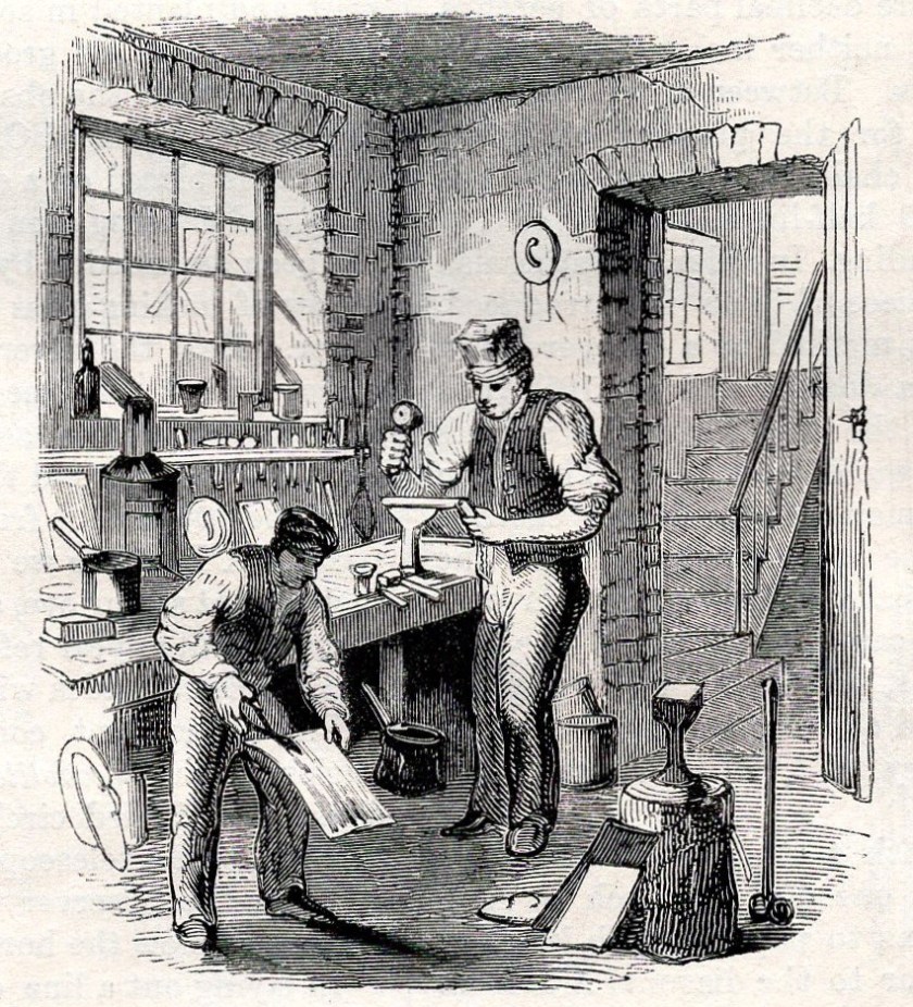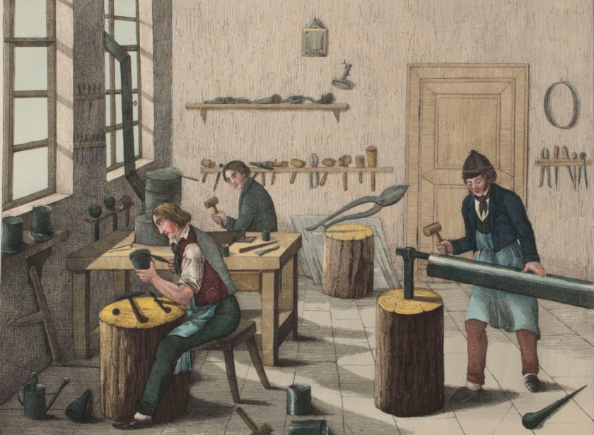 בײַם בלעכעװען, בײַם האַמערן און שערן.