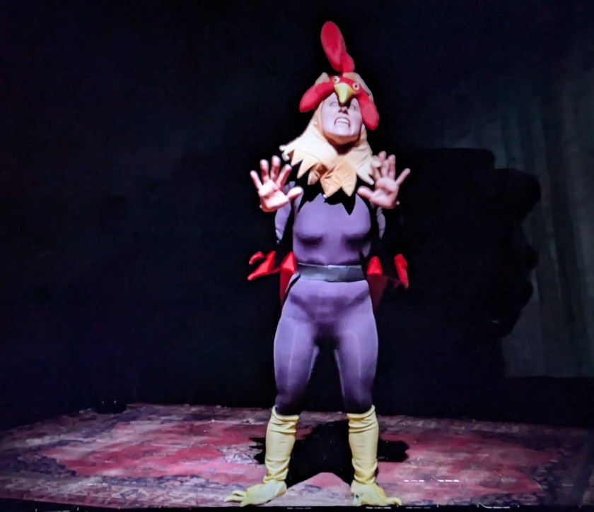 אַ חוץ צירלען, שפּילט מרים־חיה אין דער פֿאָרשטעלונג נאָך דרײַ ראָלעס — דאָס שרעטל, פֿאַרשטעלט ווי אַ שפּין, דעם טישעוויצער רבֿ („מעשׂה טישעוויץ‟) און דעם האָן פֿון דער דערציילונג „קוקעריקו‟. אין אונטערשייד צו באַשעוויסעס האָן — אַן אַלטער חכם, אַ פֿילאָסאָף, אַ מאַן מיט פֿינף ווײַבער־הינער, — האָט מרים־חיה געשאַפֿן איר אייגענע געשטאַלט — אַ שרײַענדיק הענדל, אויפֿגעבראַכט פֿון דעם אומיושר און גזלעוואַניעס, וואָס קומט פֿאָר אין שעכטהויז (געמיינט, די וועלט!); זײַן פּראָטעסט גיסט זיך אויס אין דעם איינציקן הענערישן געשריי: „קוקעריקו!‟. דער מײַסטעריש געמאַכטער קאָסטיום פֿון אַ האָן, דעם שדס קימאָנאָ, דער שפּינס אָנצוג און דעם רבֿס אומגעלומפּערטע קאַפּאָטע באַטאָנען נאָך מער די גראָטעסקישע שפּיל פֿון דעם אַקטיאָרישן דועט און גיבן צו דער פֿאָרשטעלונג אַן עכט־קאַרנאַוואַלישן גלאַנץ.