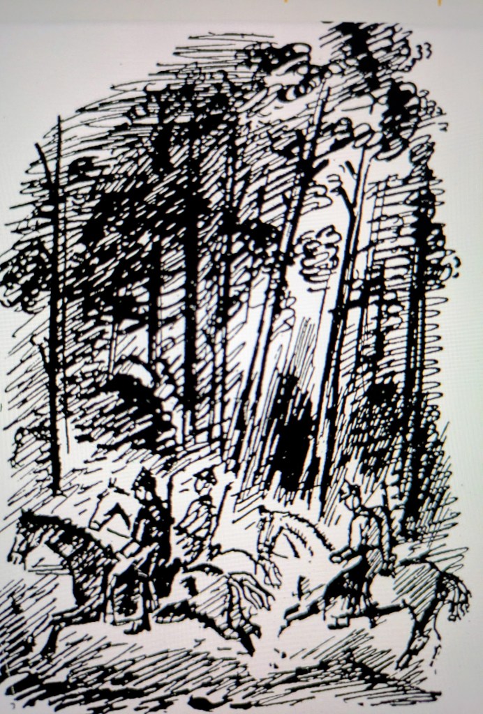 דרײַען זײַנען זײ אַרויס אין הויף. אָפּגעבונדן די פֿערד, זיך פֿלינק אַרויפֿגעכאַפּט אויף די זאָטלען און געלאָזט זיך אין וועג. צוערשט, איז מען געפֿאָרן מיט אַ ברוקירטן שליאַך, דערנאָך פֿאַרקערעוועט אויף אַ זײַט, זיך אַראָפּגעלאָזט באַרג־אַראָפּ צום טײַך, איבערגעפֿאָרן איבער דער קלאַדקע, זיך אויפֿגעהויבן װידער אַ מאָל באַרג־אַרויף, דאָ פֿון אויבן האָבן זיי פֿאַרקערעוועט אין אַ וואַלד. מער האָט מען שױן אינערגעץ ניט באַדאַרפֿט קערעווען. דער דאָזיקער וועג האָט געפֿירט גלײַך קיין ווערעסי. אין וואַלד איז געװען שטיל, ס׳האָט זיך נאָר פֿון מאָל צו מאָל געהערט דאָס קרעכצן פֿון הויכע סאָסנעס, װאָס ווערן געבויגן פֿון ווינט. נאָך אין אָנדערהאַלבן שעה שנעלן פֿאָרן האָבן אונדזערע רײַטער דערזען די ערשטע כאַטע פֿון ווערעסי.
