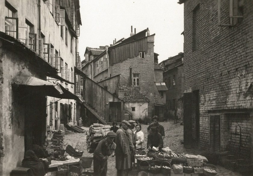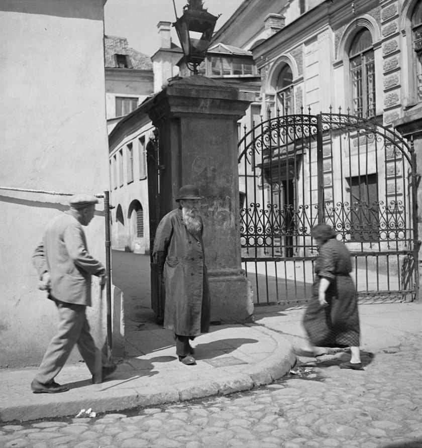 און אָט איז די דייַטשע־גאַס (וואָקיעטשו). הייַנט שטייט דאָרט אַ נאָכמלחמהדיקער בנין אין סטאַלינישן סטיל. אָבער דאָרט איז געווען דער אַרייַנגאַנג אינעם שולהויף, וועגן וועלכן כ’האָב געלייענט און אויסגעהערט אַזוי פֿיל מעשׂיות. דאָרטן איז דאָך געווען די גרויסע שול און אַרום איר דרייַצן פּראָפֿעסיאָנעלע שולן און בתּי-מדרשים. דאָרטן האָט זיך געפֿונען אויך די באַקאַנטע סטראַשון-ביבליאָטעק. אין דעם הויף האָט זיך פֿונאַנדערגעשפּילט די דראַמע, וועלכע קאַרפּינאָוויטש האָט אַ נאָמען געגעבן „דער לעצטער נבֿיא פֿון ווילנע‟. אַ סך יאָרן פֿאַר דער מלחמה האָט דער רבֿ איסערסאָן, בייַ וועלכן, לויט קאַרפּינאָוויטשן „האָט זיך דאָס מעבל אין קאָפּ אַריבערגערוקט‟, פֿלעג שטיין אויף די טרעפּ פֿון דער גרויסער שול און שרייַען און גוואַלדעווען: „ייִדן, אַנטלויפֿט וואָס גיכער, עס גייט אויף אייַך אַ חורבן!‟. אַלע האָבן געדרייט מיטן פֿינגער בייַם שלייף און געטענהט מיט רחמנות: אַַ משוגענער… אָבער ווער האָט אים יאָ געגלייבט? — די ווילנער משוגעים. זיי פֿלעגן זיך אויפֿהאַלטן טאַקע אינעם שולהויף, און זיי האָבן איסערסאָנען אויסגעקליבן פֿאַר זייער פּרעזידענט… איצט גיי פֿאַרשטיי, ווער איז משוגע, און ווער איז קלאָר…
